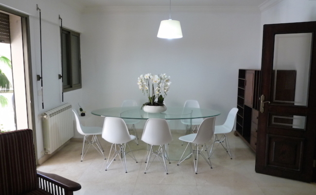 Furnished flat to rent in Achrafieh near the square Sassine and the ABC mall consisting of 1 living and 1 dining room opening onto a large terrace. It has also a nice equiped kitchen , 3 bedrooms. Secured residence. 1 parking spot. R602