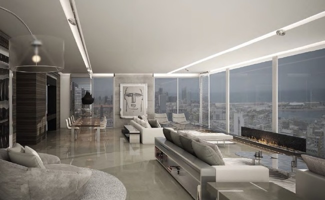 Achrafieh Sursock. apartments of 325m2 per floor, and each has its own private entrance. The apartments can either have 3 or 4 on-suite bedrooms, depending on the customer’s preference, in addition to a spacious living room. A service elevator serves the 2 apartments and leadsdirectly into the apartment’s kitchen area through a service door.